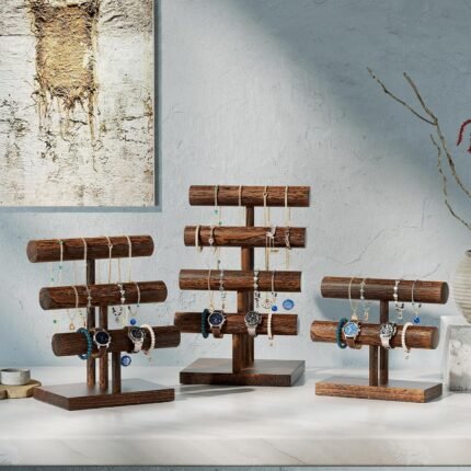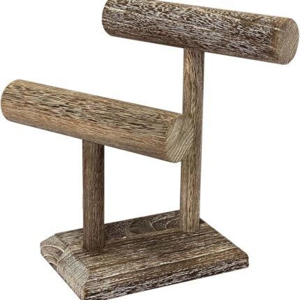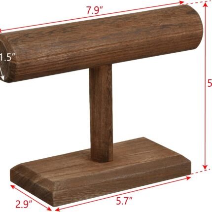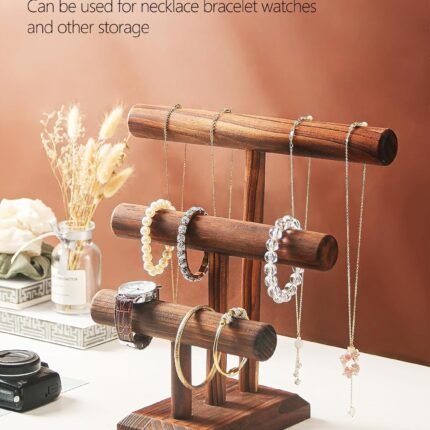 Bracelet Holder Display Bracelet Organizer, Wooden Bracelet Stand for Selling, T-bar Bangle Storage Rack Wood Watch Display Tower for Business – 2 Tier, Brown