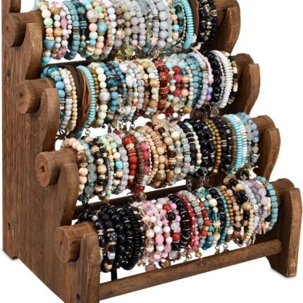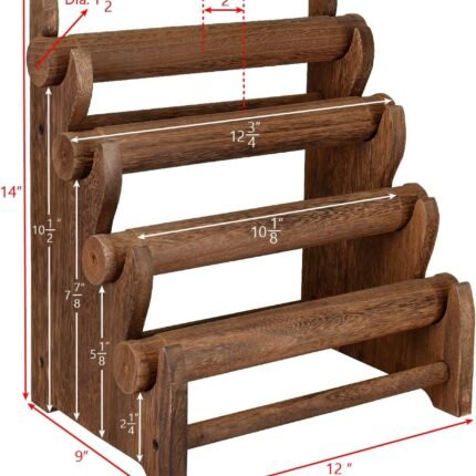 Antique Wooden 4 Tier Jewelry Bracelet Display Stand Bangle Scrunchie Organizer Holder for Store, Showcase and Home Storage, 12 W x 9 D x 14 H in, Brown Color